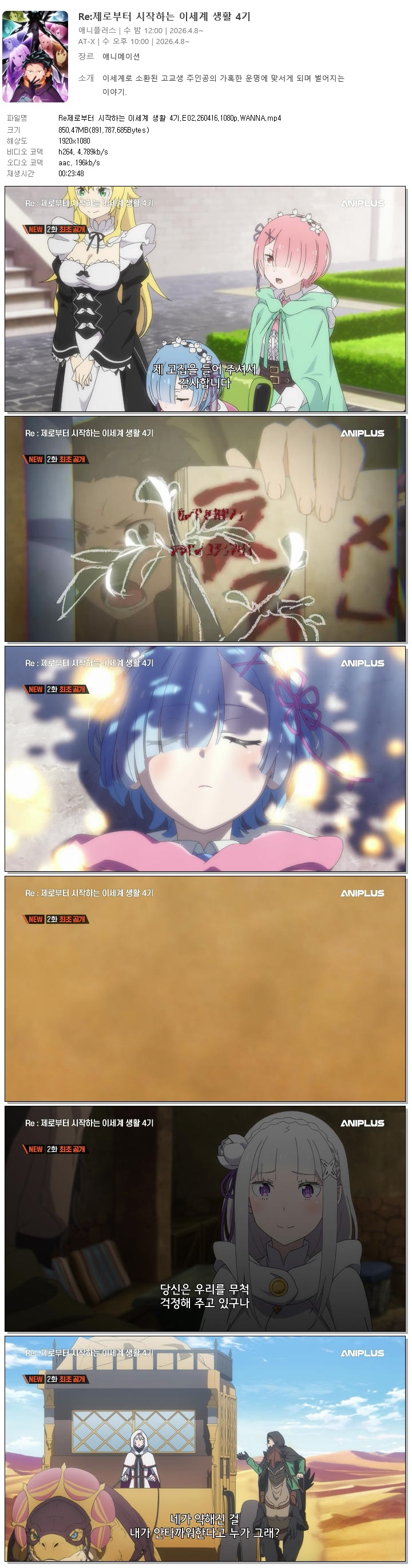 ReÁ¦·ÎºÎÅÍ ½ÃÀÛÇÏ´Â À̼¼°è »ýȰ 4±â.E02.260416.1080p.WANNA... 850.5M ÃֽžִÏ