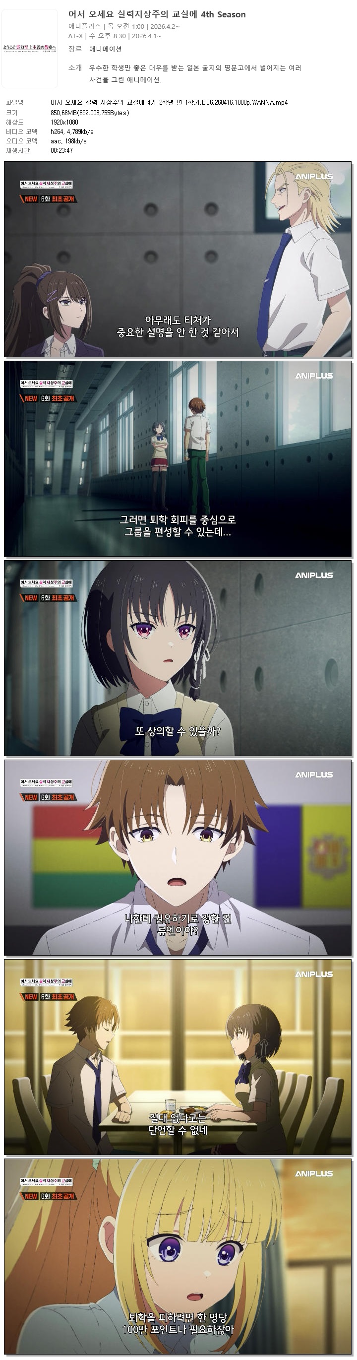 ¾î¼­ ¿À¼¼¿ä ½Ç·Â Áö»óÁÖÀÇ ±³½Ç¿¡ 4±â 2ÇÐ³â Æí 1Çбâ.E06.260416.1080p.WANNA... 850.7M ÃֽžִÏ