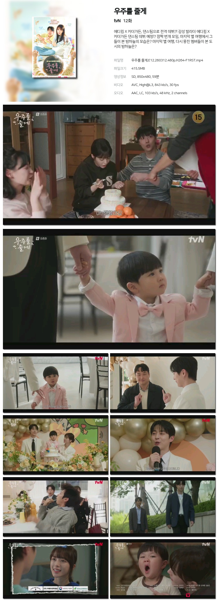 [tvN] ¿ìÁÖ¸¦ ÁÙ°Ô.E12.260312.480p.H264-F1RST... 415.5M Ãֽŵå¶ó¸¶