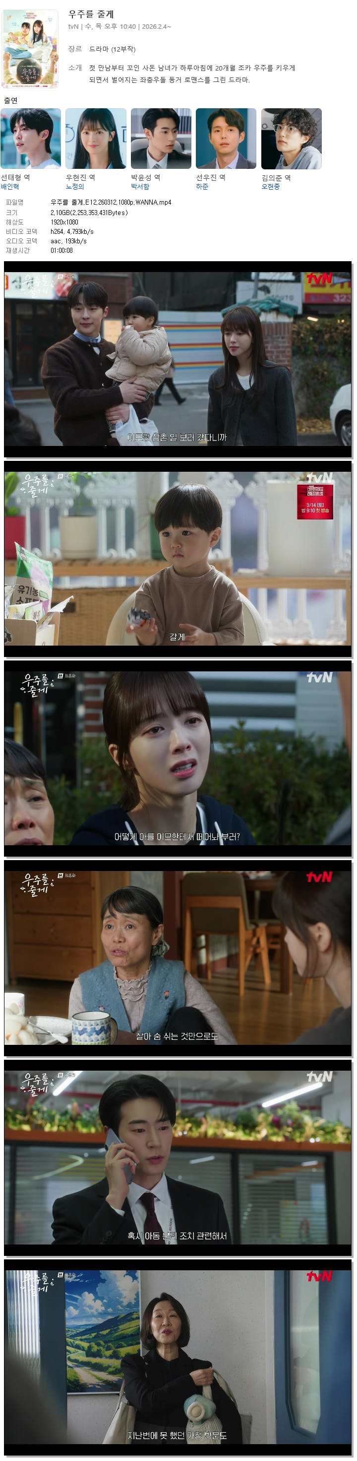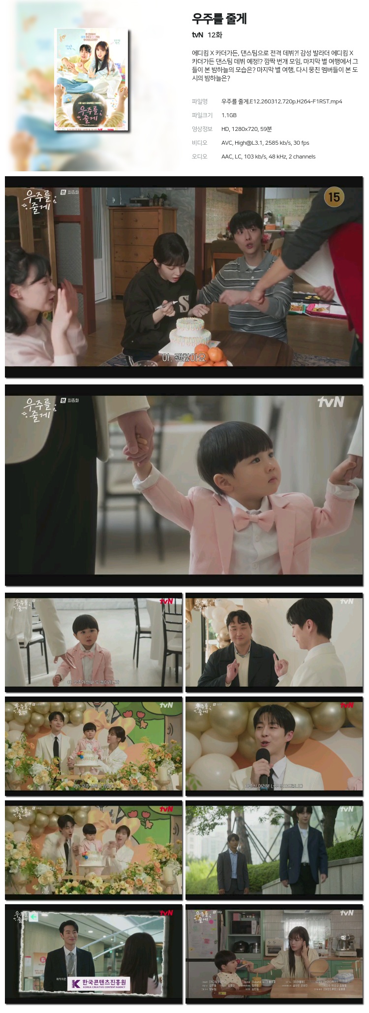 [tvN] ¿ìÁÖ¸¦ ÁÙ°Ô.E12.260312.1080p.H265-F1RST... 1.6G Ãֽŵå¶ó¸¶