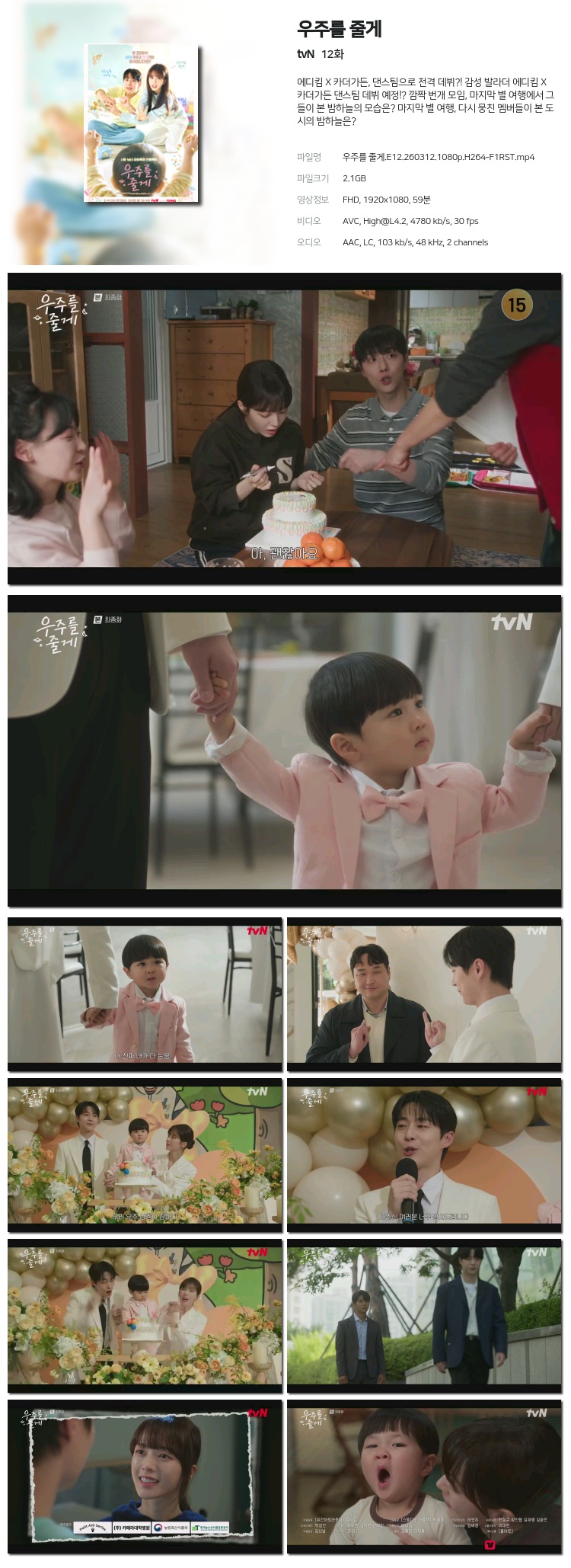 [tvN] ¿ìÁÖ¸¦ ÁÙ°Ô.E12.260312.1080p.H264-F1RST... 2.1G Ãֽŵå¶ó¸¶