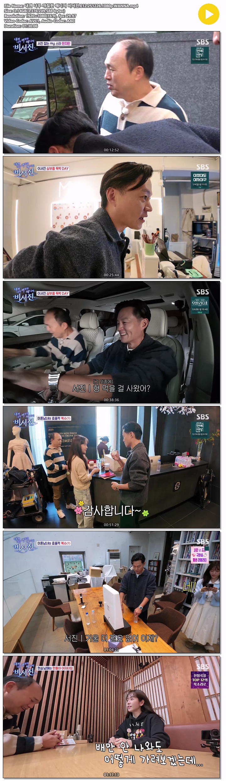 ³»°Õ ³Ê¹« ±îÄ¥ÇÑ ¸Å´ÏÀú ºñ¼­Áø.E12.251226.1080p.WANNA.mp4... 3.1G µ¿¿µ»ó