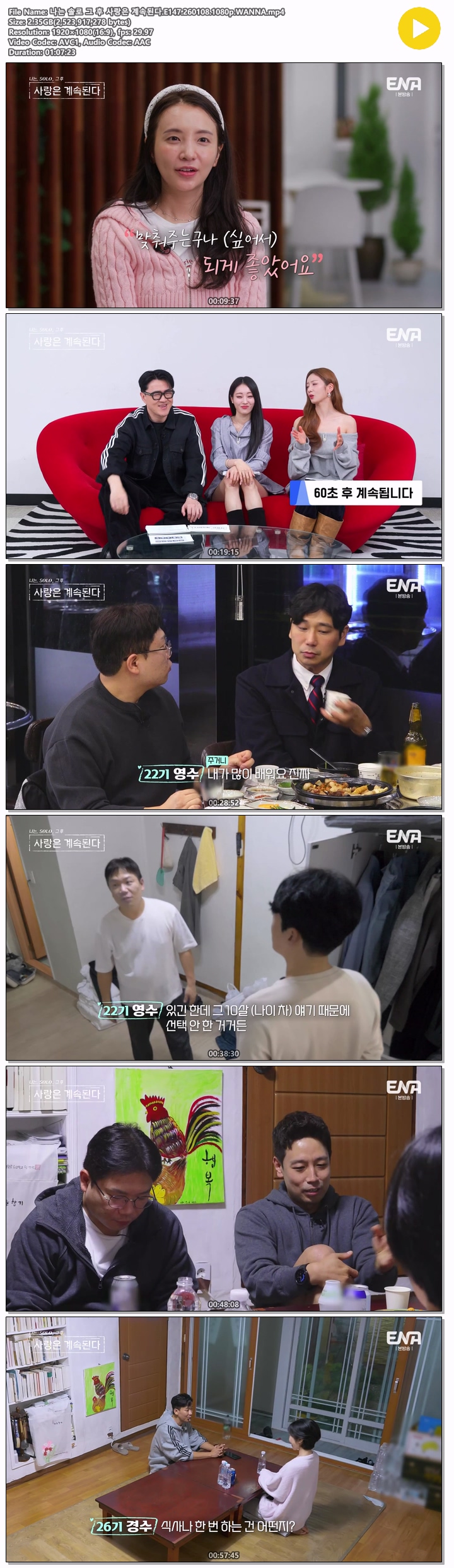 ³ª´Â ¼Ö·Î ±× ÈÄ »ç¶ûÀº °è¼ÓµÈ´Ù.E147.260108.1080p.WANNA.mp4... 2.4G µ¿¿µ»ó