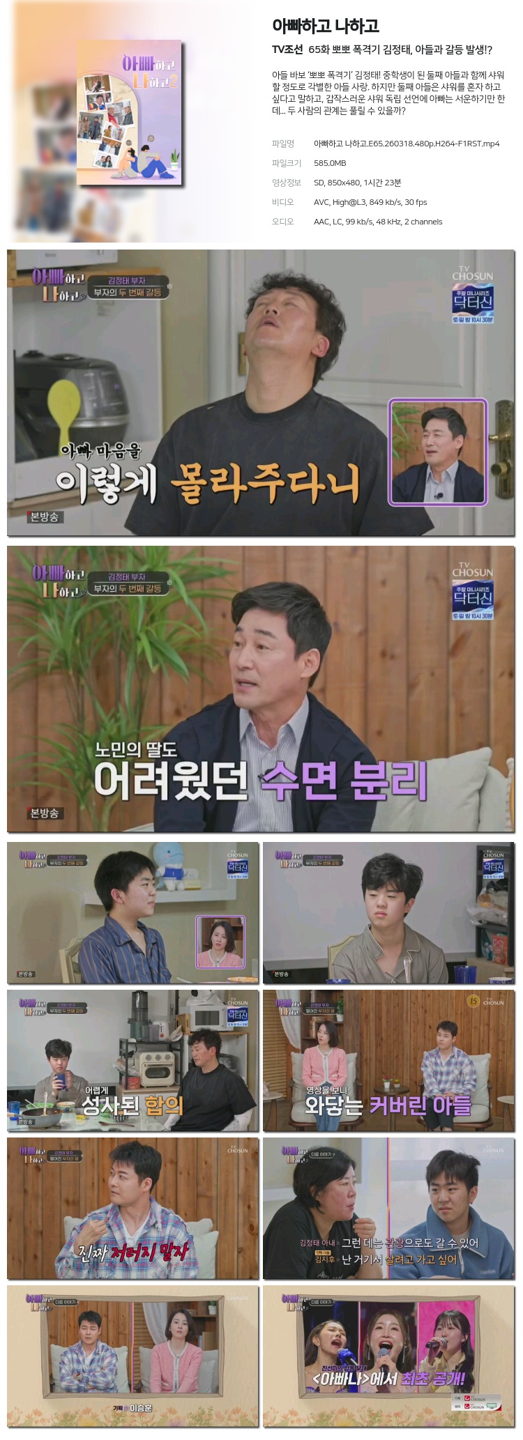 [TVÁ¶¼±] ¾ÆºüÇÏ°í ³ªÇÏ°í »Ç»Ç Æø°Ý±â ±èÁ¤ÅÂ, ¾Æµé°ú °¥µî ¹ß»ý!?.E65.260318.480p.H264-F... 585.0M µ¿¿µ»ó