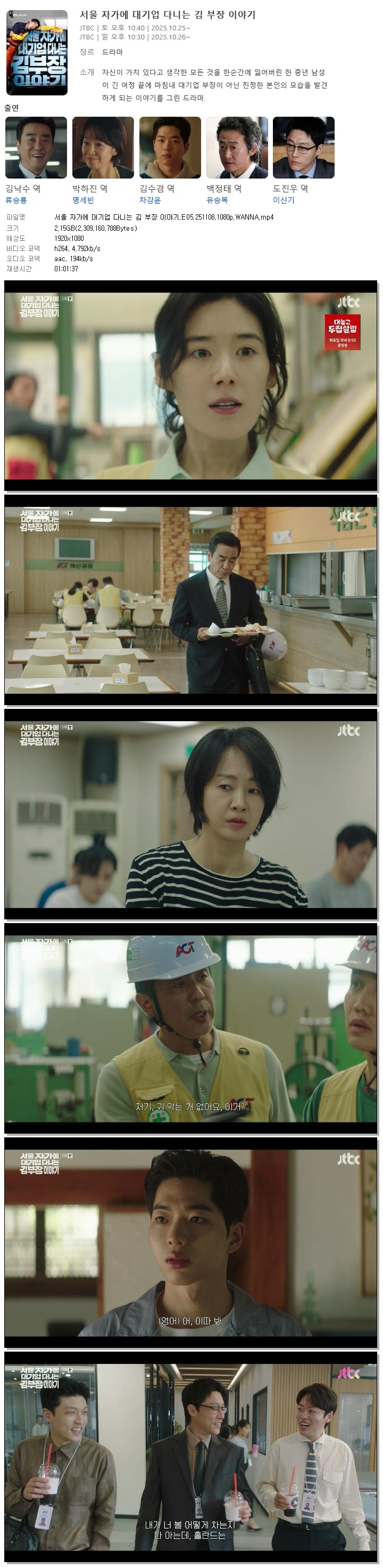 ¼­¿ï ÀÚ°¡¿¡ ´ë±â¾÷ ´Ù´Ï´Â ±è ºÎÀå À̾߱â.E05.251108.1080p.WANNA... 2.2G µå¶ó¸¶