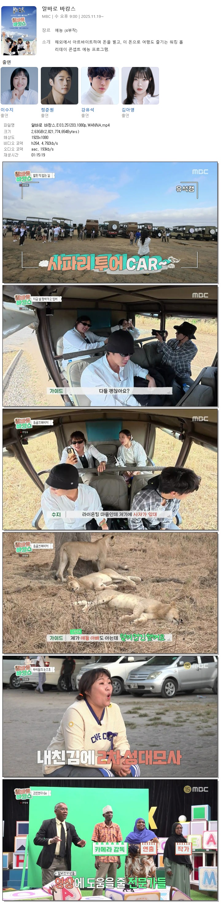 ¾Ë¹Ù·Î ¹ÙIJ½º.E03.251203.720p.WANNA... 1.7G µ¿¿µ»ó