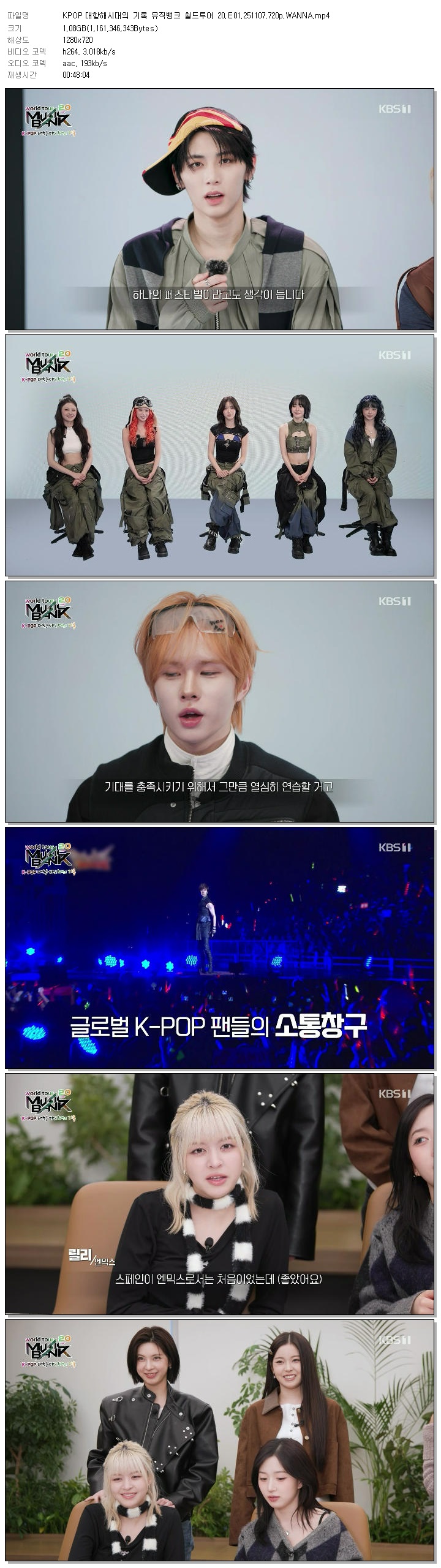 KPOP ´ëÇ×ÇØ½Ã´ëÀÇ ±â·Ï ¹ÂÁ÷¹ðÅ© ¿ùµåÅõ¾î 20.E01.251107.1080p.WANNA... 1.7G µ¿¿µ»ó