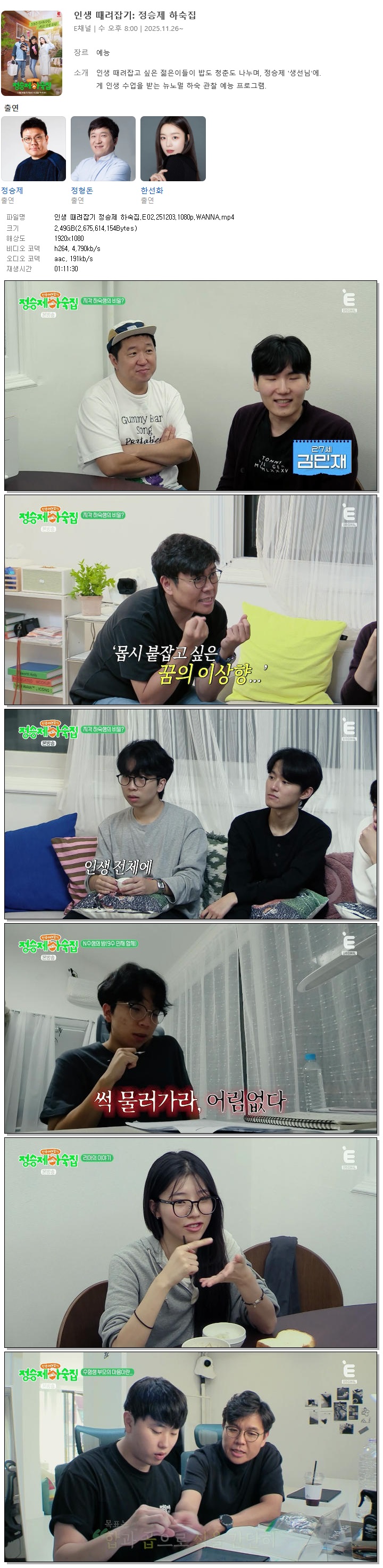 Àλý ¶§·ÁÀâ±â Á¤½ÂÁ¦ Çϼ÷Áý.E02.251203.720p.WANNA... 1.6G µ¿¿µ»ó
