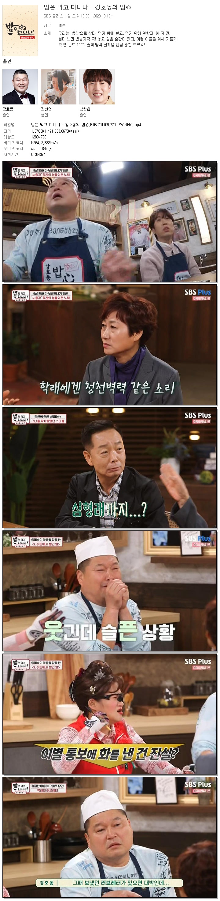 ¹äÀº ¸Ô°í ´Ù´Ï³Ä - °­È£µ¿ÀÇ ¹äãý.E05.201109.720p.WANNA... 1.4G µ¿¿µ»ó