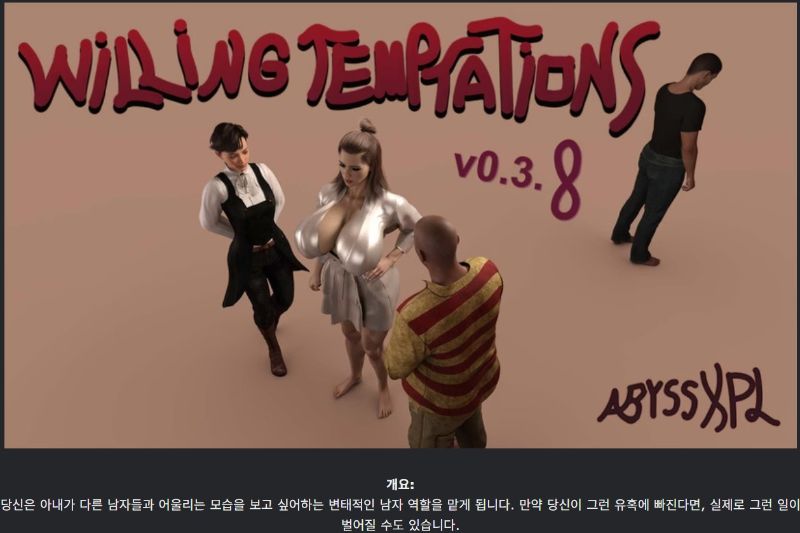 ÇѱÛ.·»ÆÄÀÌ.³²ÁÖ.NTR.Áö¹è.¾÷µ«]Willing Temptations v0.4 Hotfix 1... 2.9G °ÔÀÓ