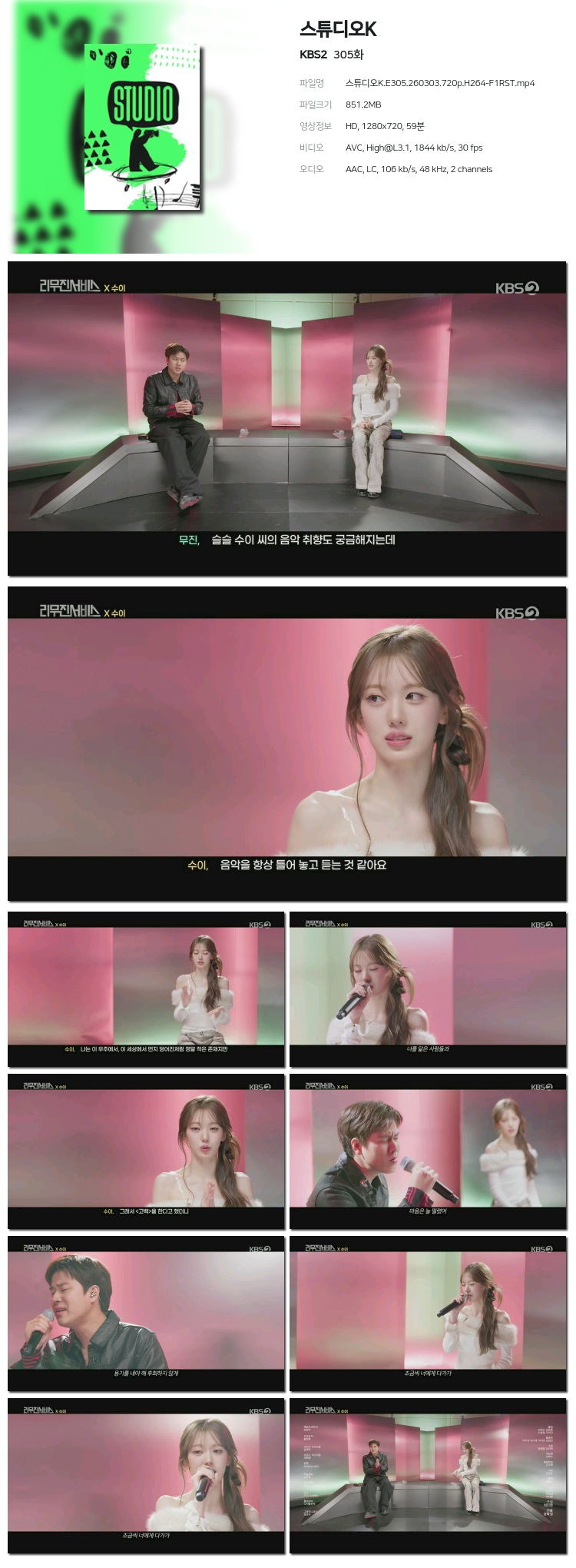 [KBS2] ½ºÆ©µð¿ÀK.E305.260303.720p.H264-F1RST... 851.2M µ¿¿µ»ó